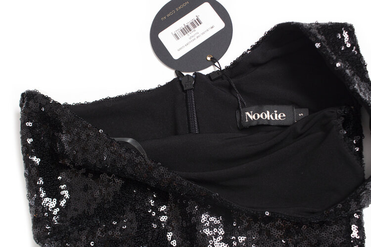 • Nookie, Spellbound one shoulder gown with sequence in black. This item is new with tags.