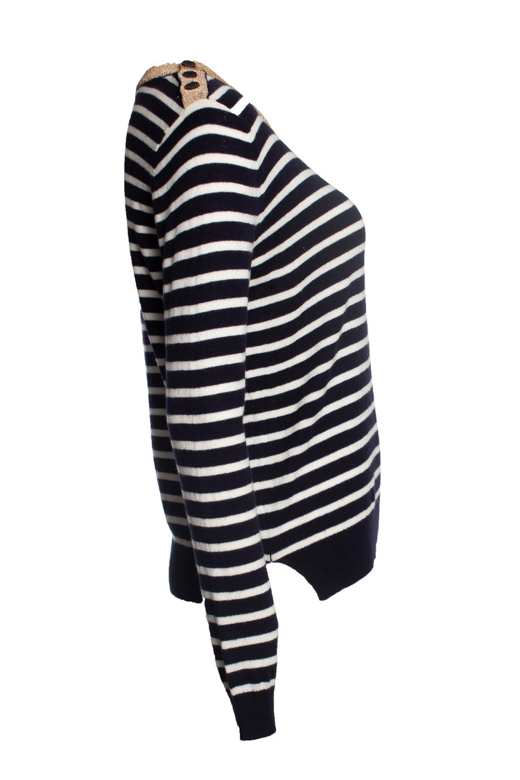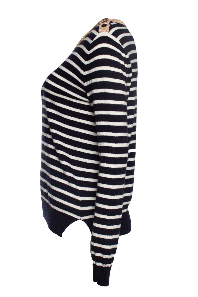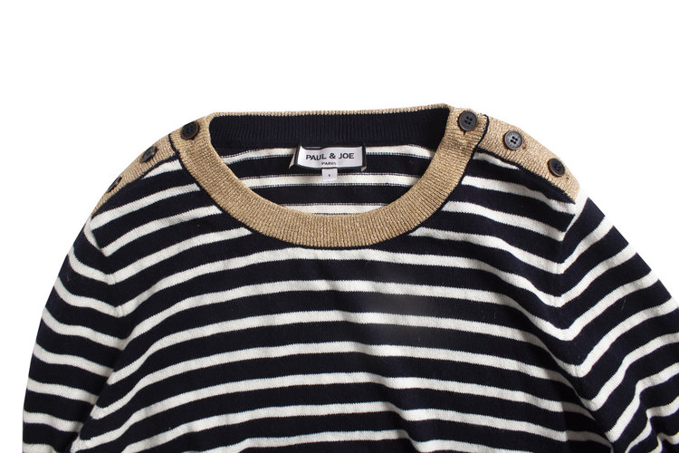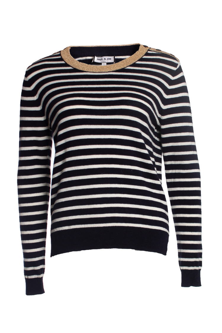 • Paul & Joe, Striped crewneck sweater with gold details. The item is in good condition