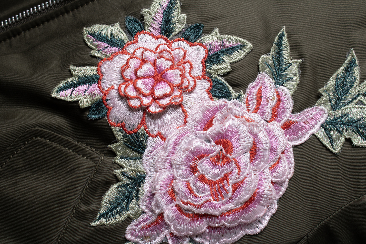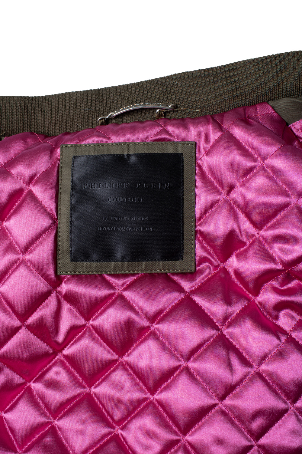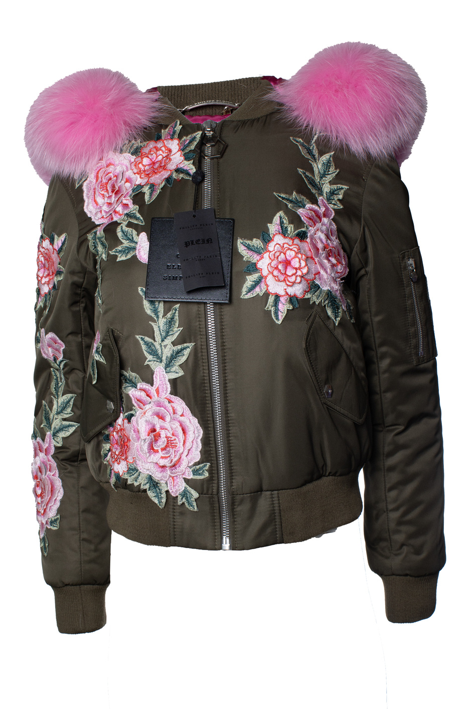 • Philipp Plein, hooded bomber with floral embroidery and fox fur. The item is new with tag.