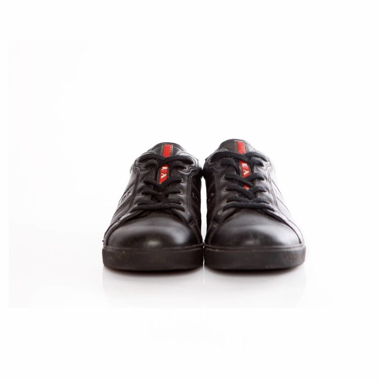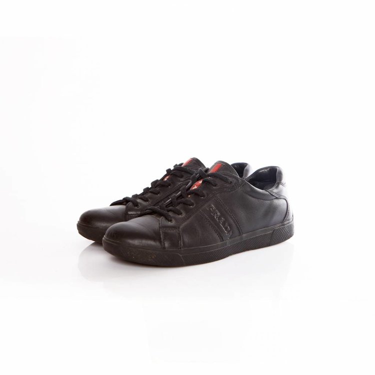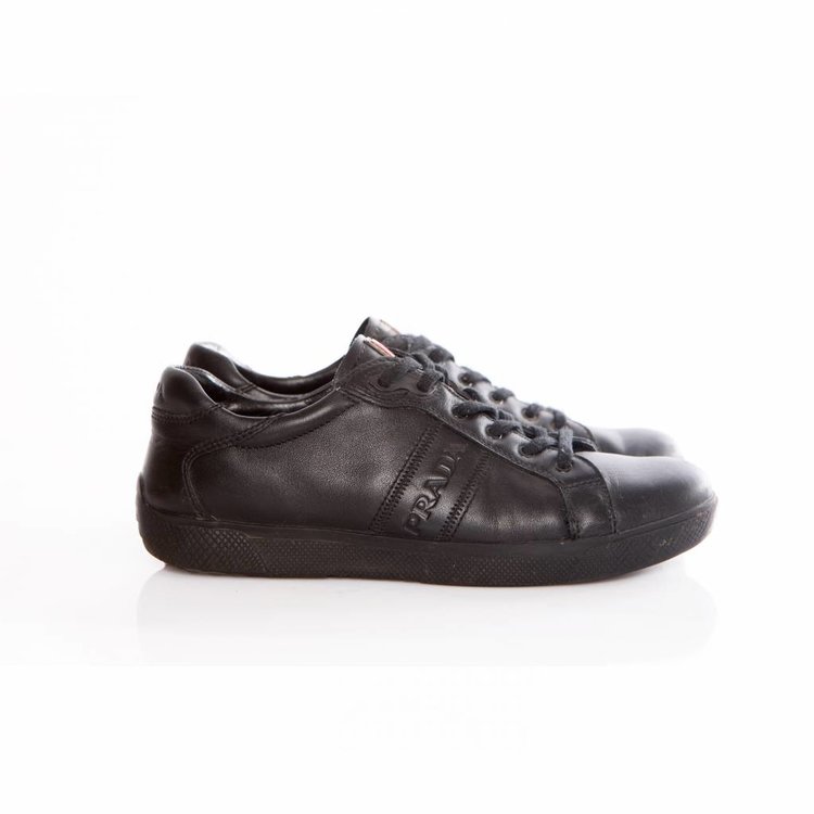 • Prada, black sneakers with prada logo in size 37.5. This product has been worn only once and is in excellent condition.
