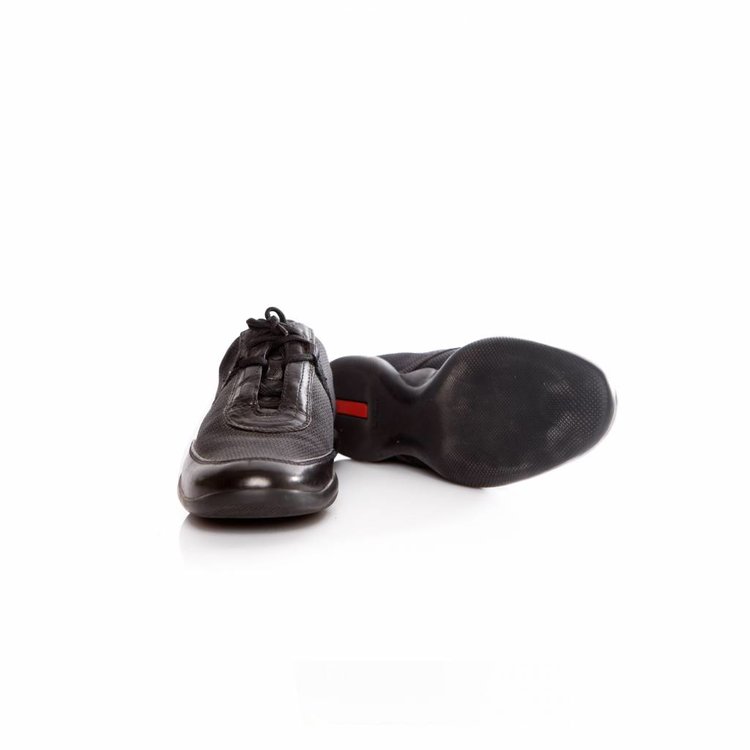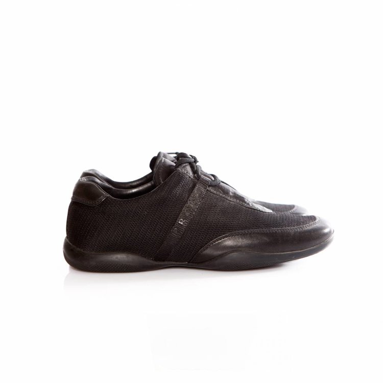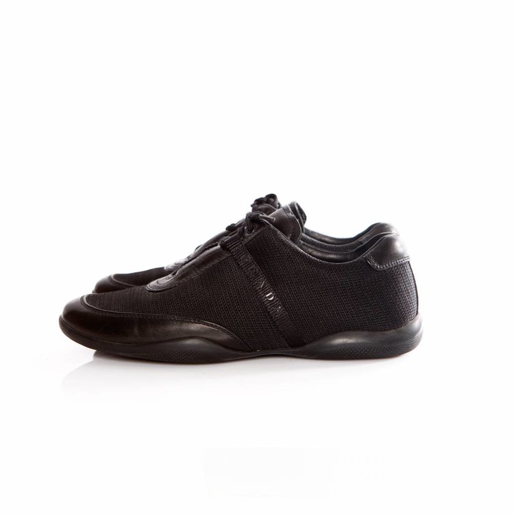 • Prada, black sneakers in leather and fabric with prada logo in size 37. This product has been worn only once and is in excellent condition.