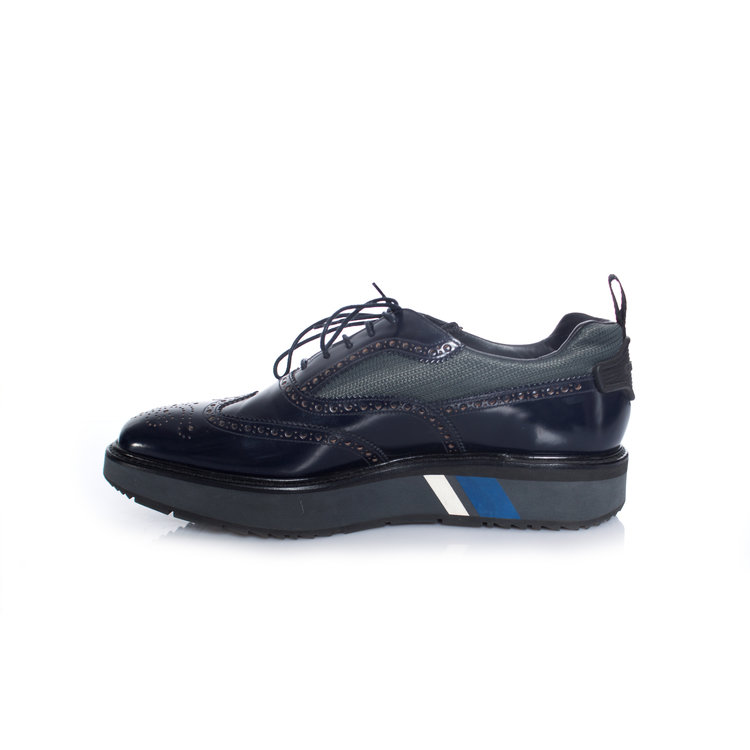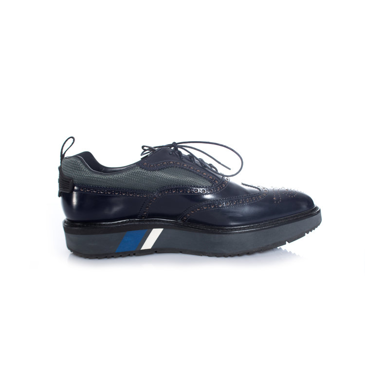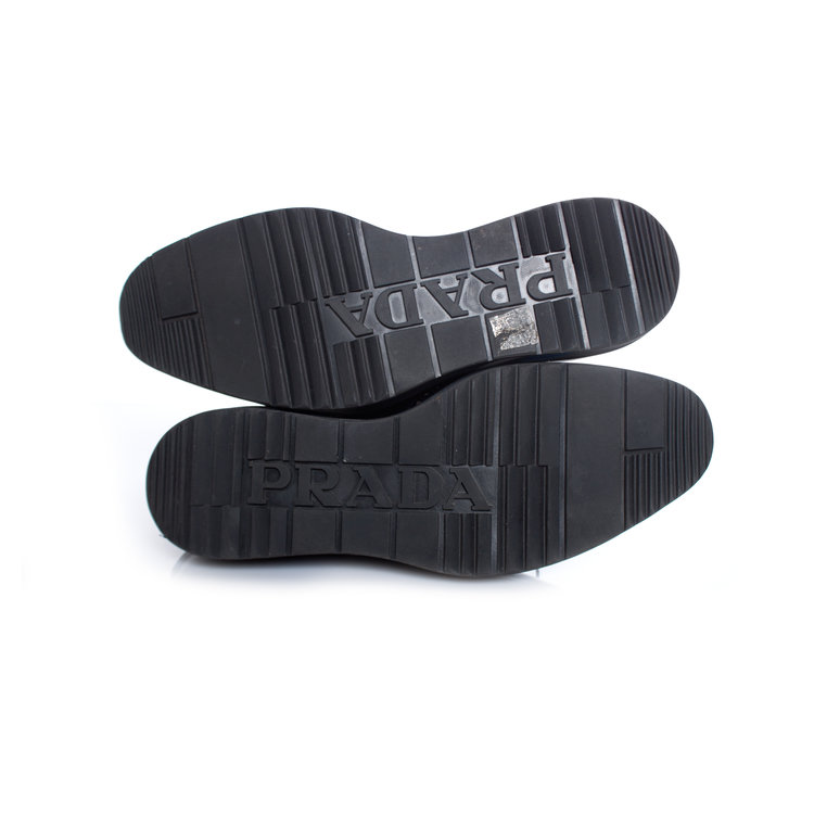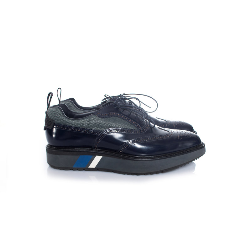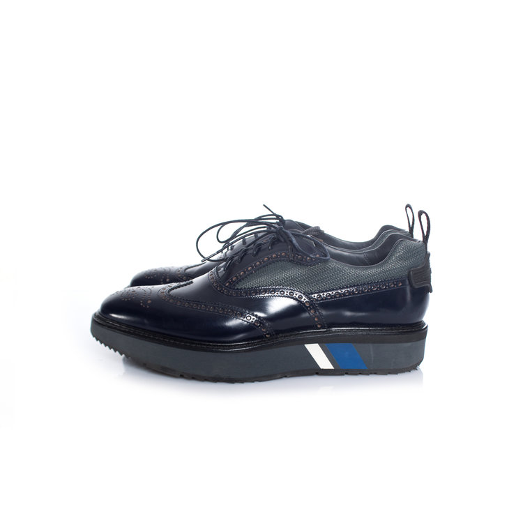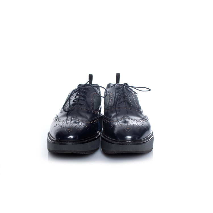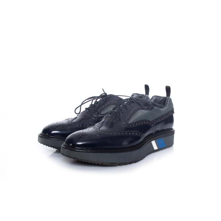 • Prada, Micro sole patent leather lace-up derbies in blue in size 7.5/41.5. This item is in very good condition.