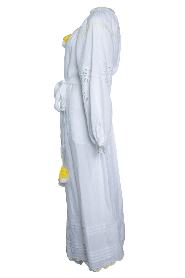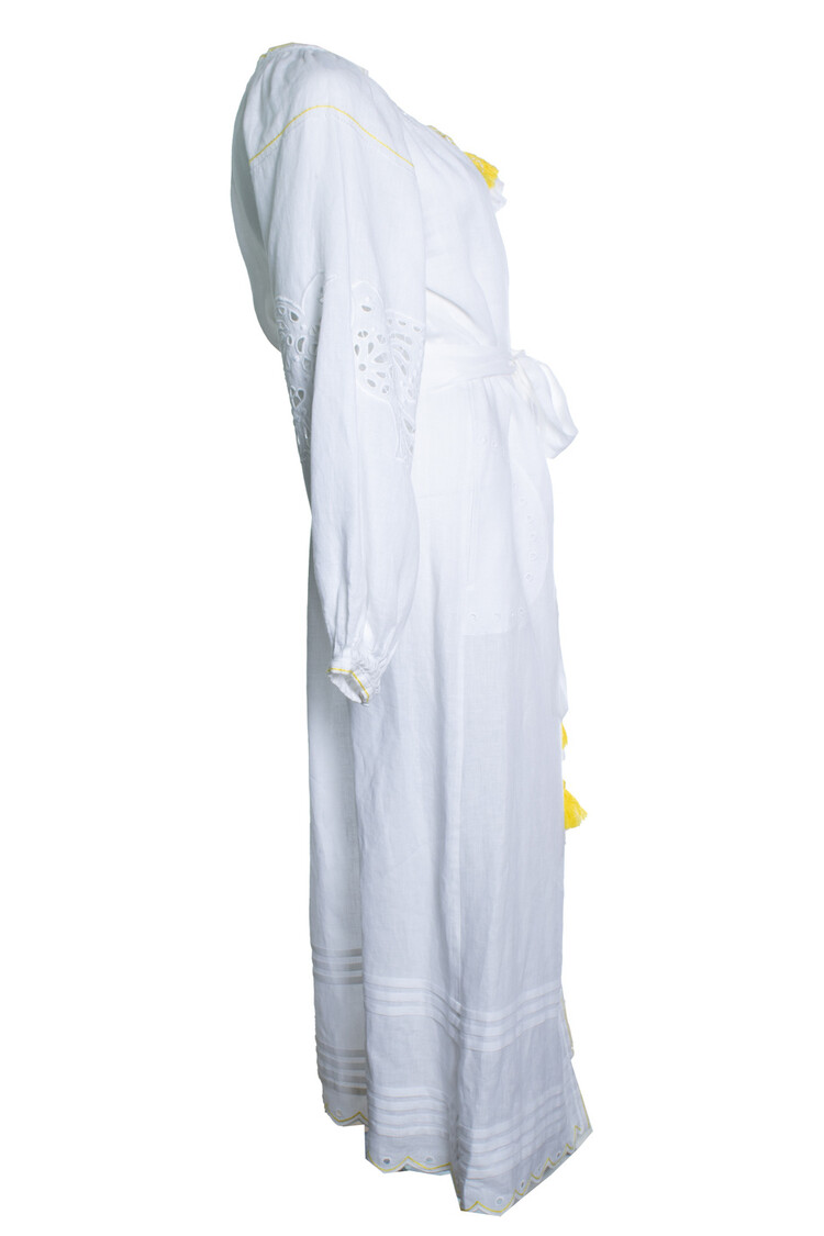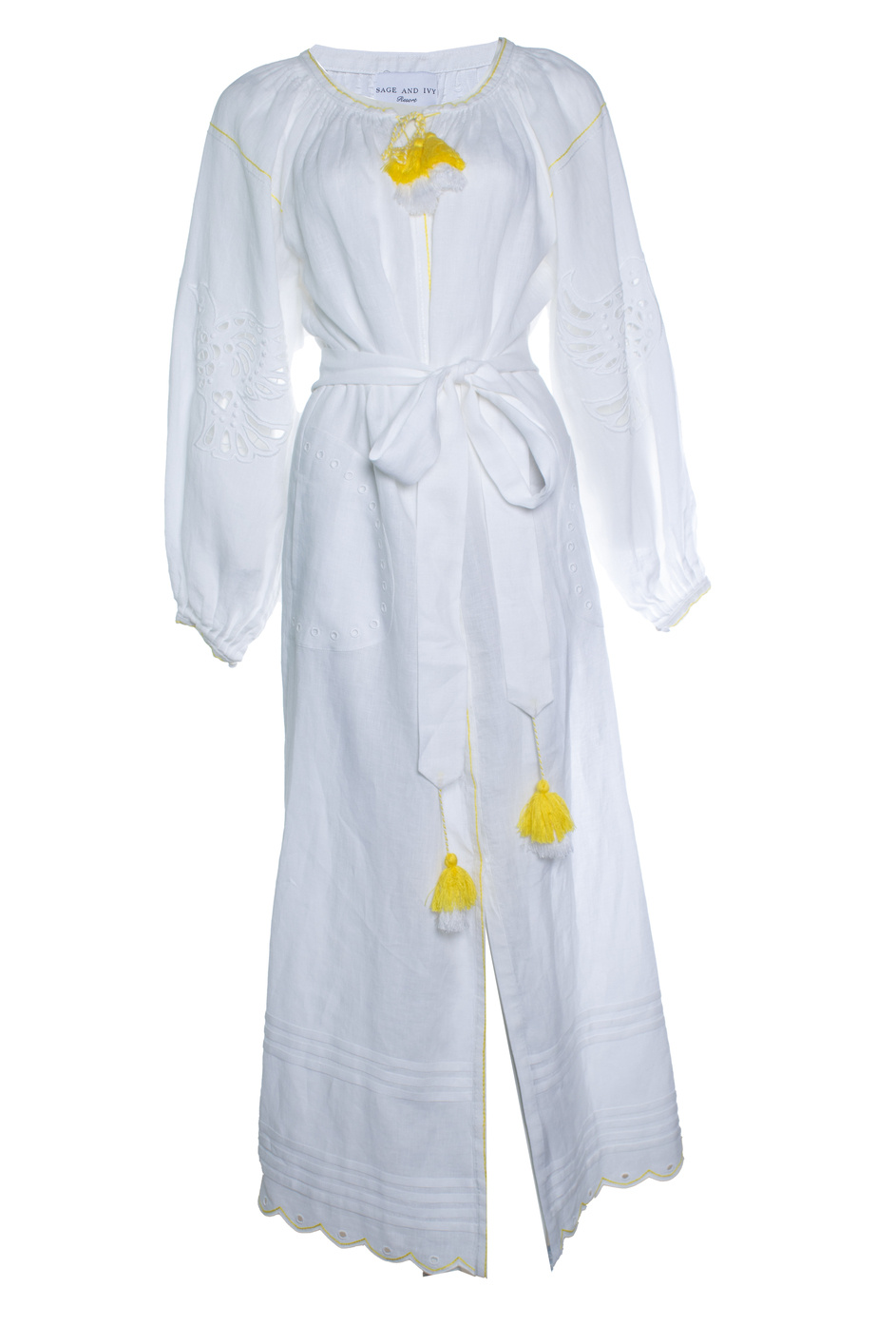 • Sage & Ivy resort, white linen maxi dress with yellow details. The item is in very good condition.