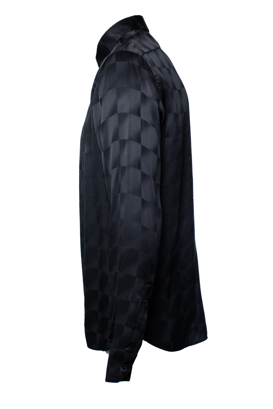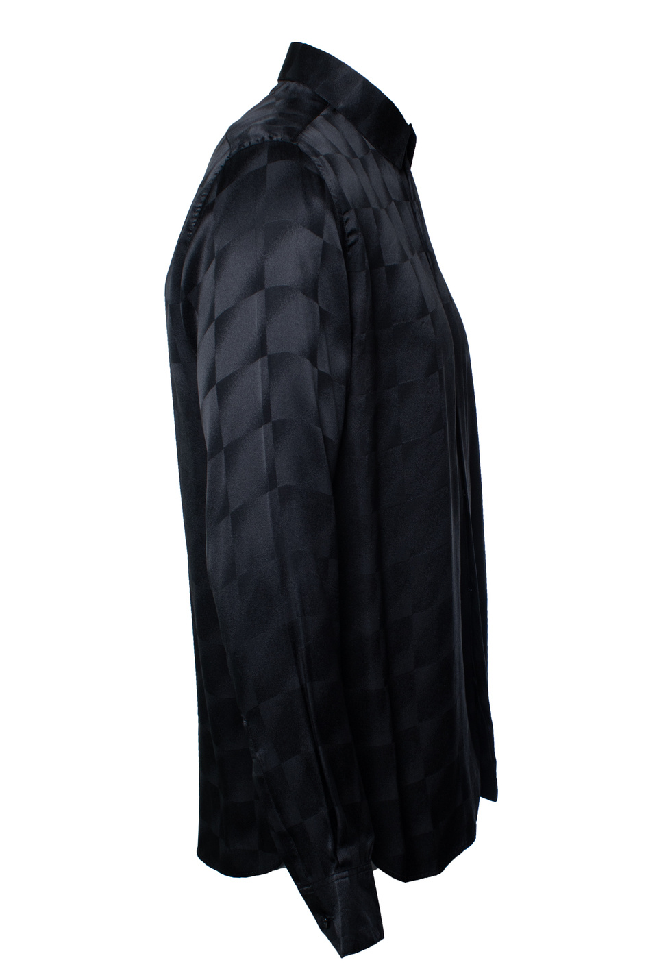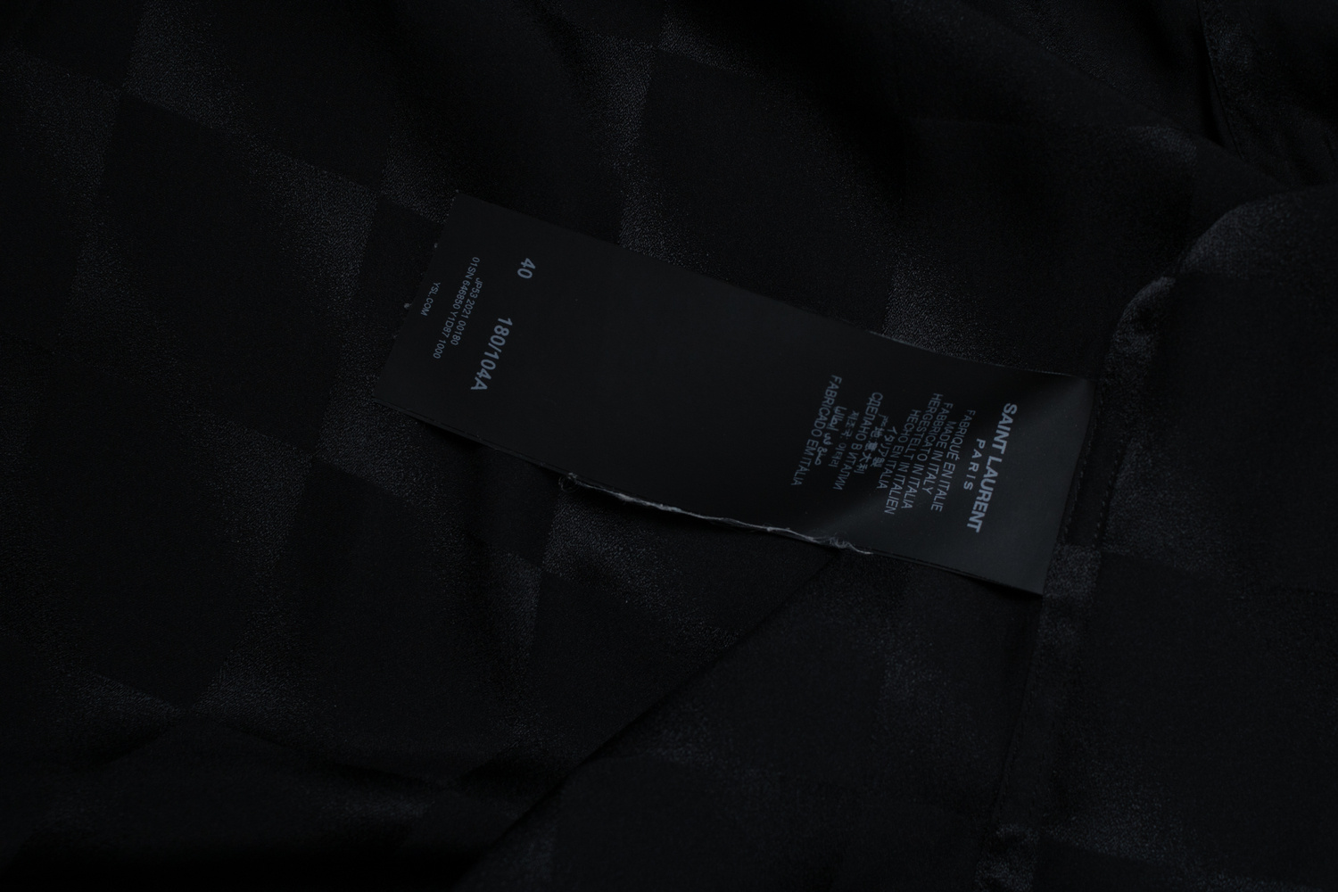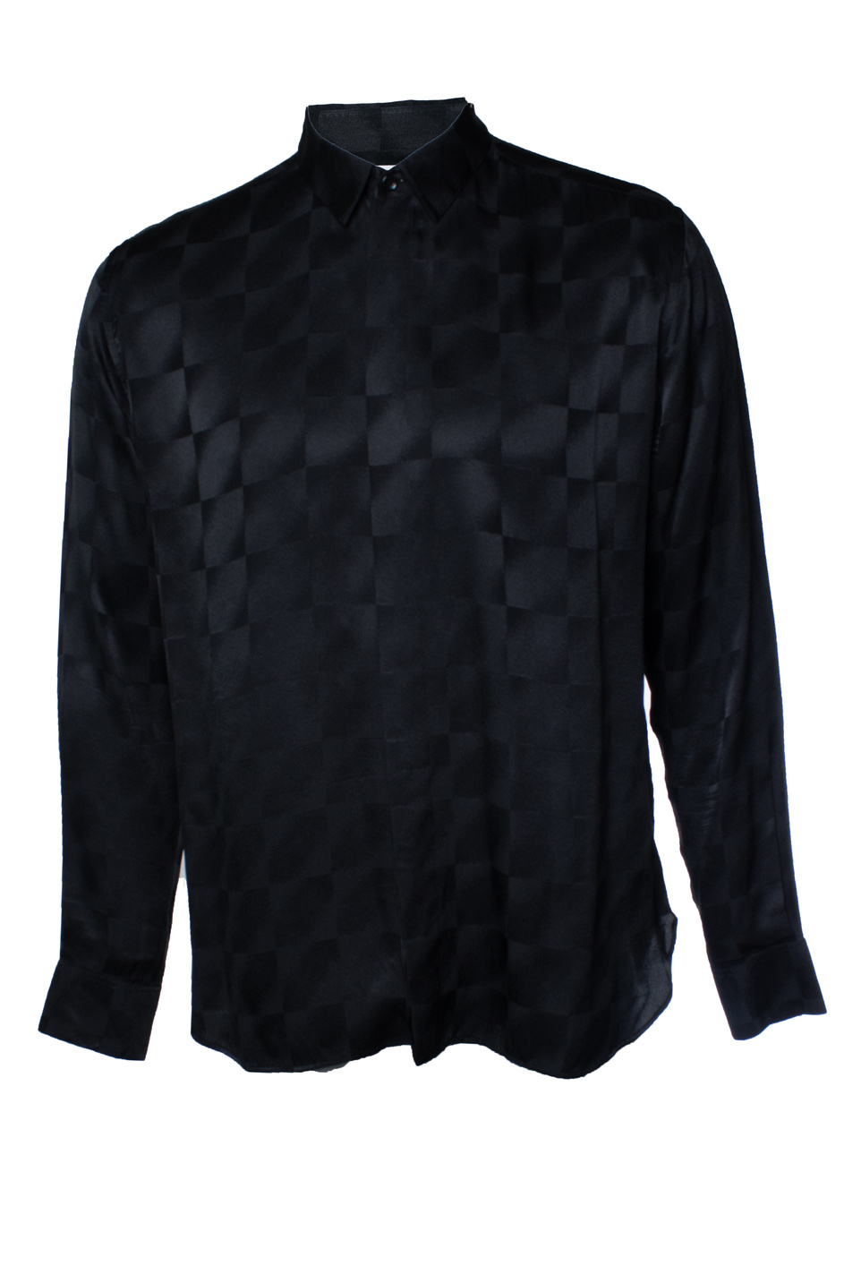 • Saint Laurent, black shirt with matte and shiny squares 2021. The item has lights stains under the armpit.
