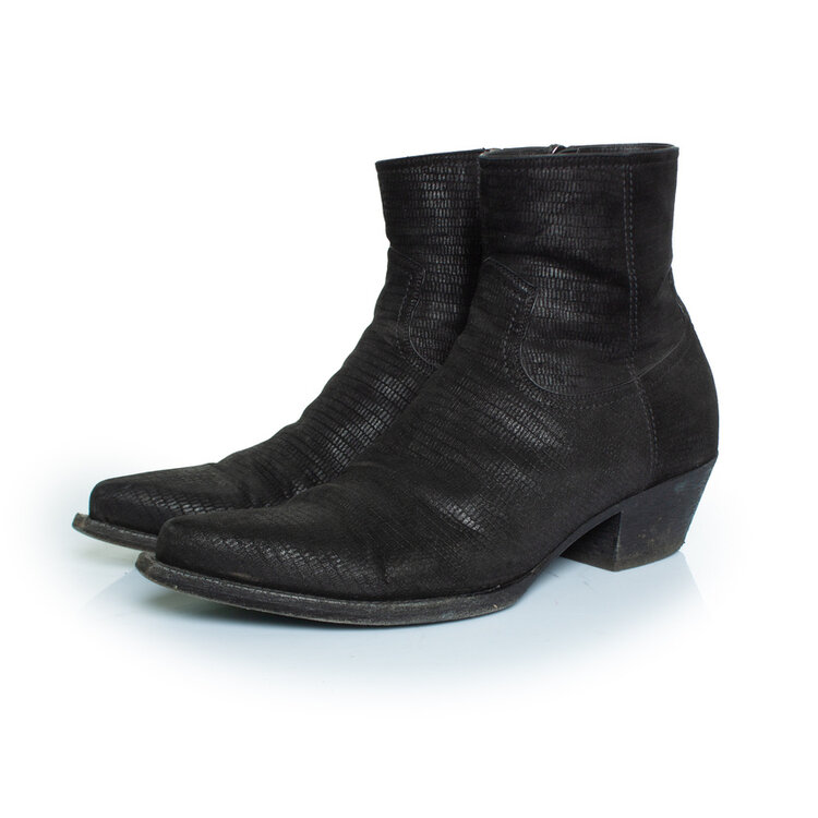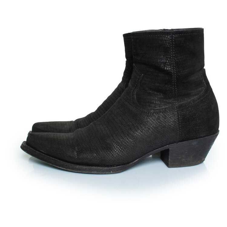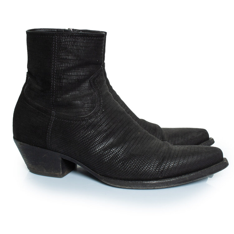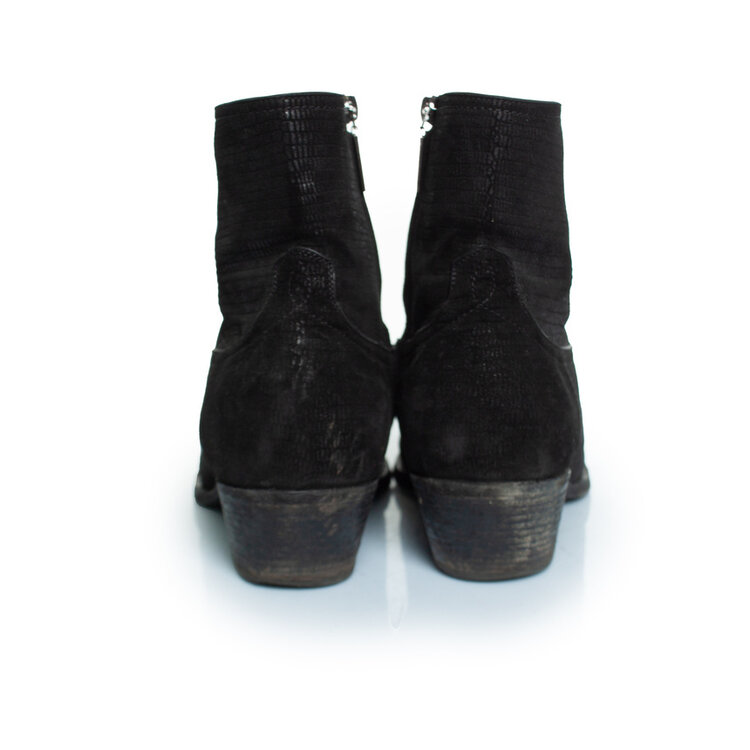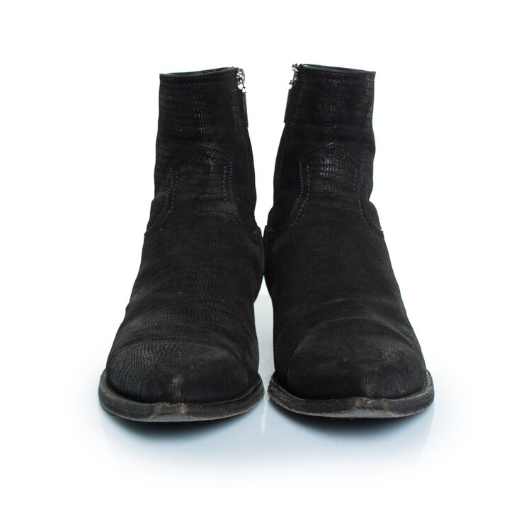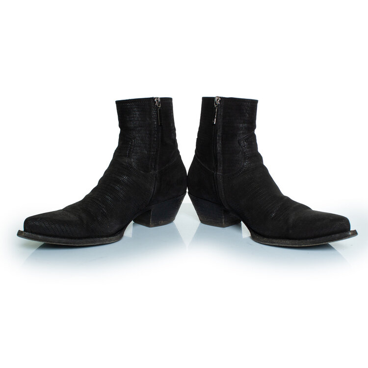 • Saint Laurent, Lizard printed suede Lukas boots in black. The item is in good condition.