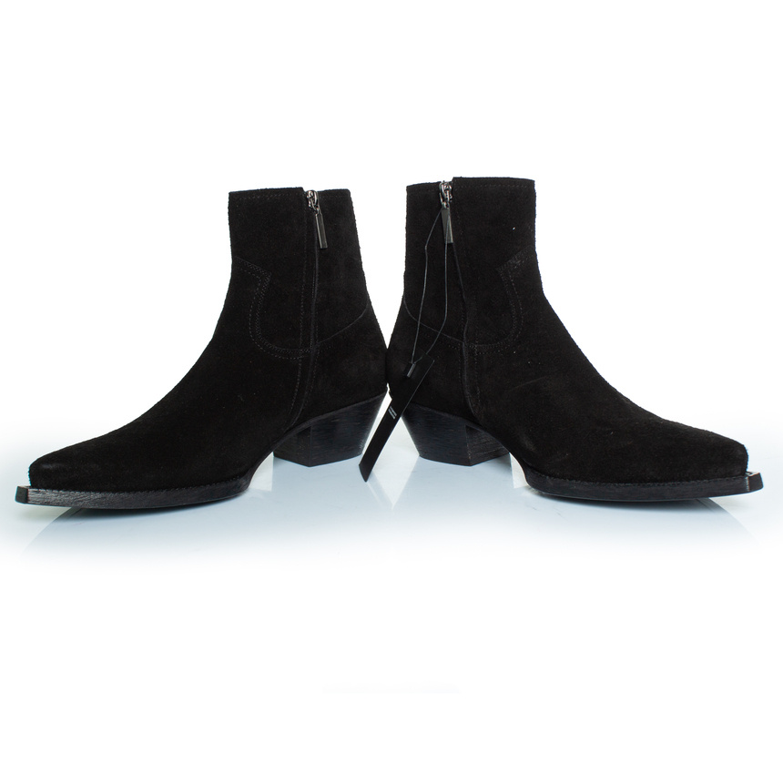 • Saint Laurent, Lukas wool suede ankle boots in black . The item is new with tag.