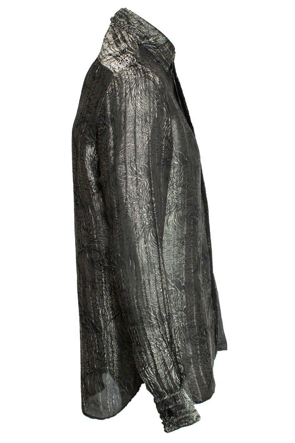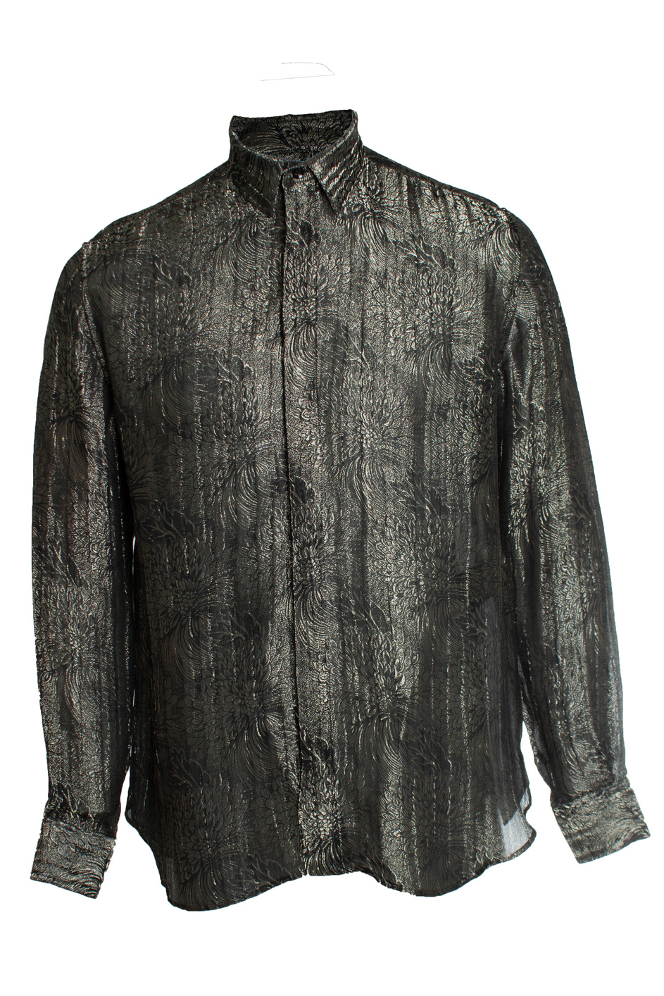 • Saint Laurent, Metallic floral patterned shirt in black and gold 2018. The item is in excellent condition.