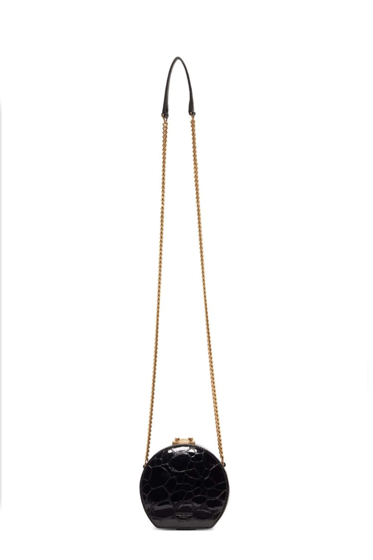 Saint Laurent, Mica B baby bag with embossed crocodile effect. This item is brand new with box, dustbag, authenticity cards and original price tag.
