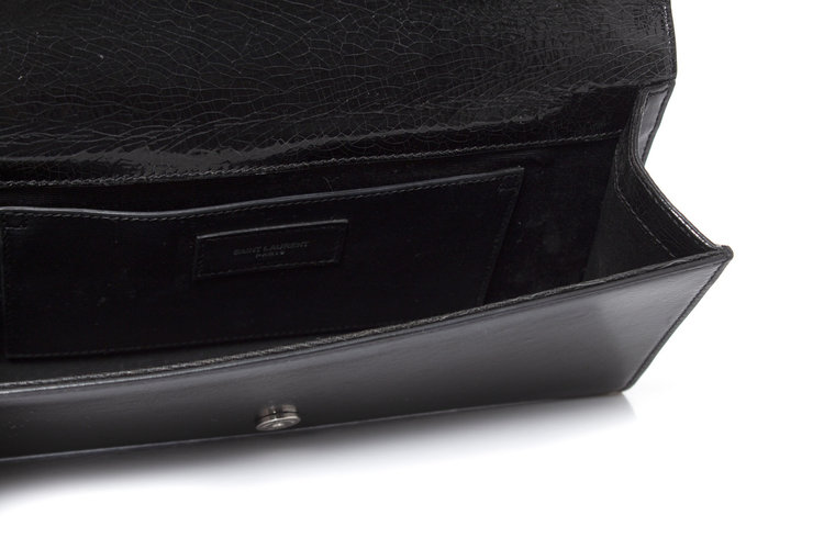Saint Laurent, Black crackle patent leather Kate clutch bag. The item has scratches on the leather, further in good condition. Light signs of use on the interior.