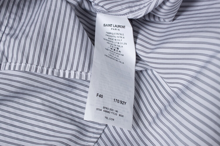 • Saint Laurent, Pinstripe shirt in grey and white. The item is in very good condition.