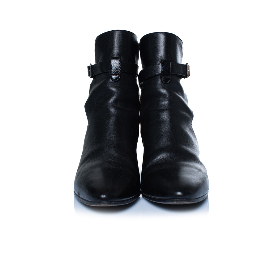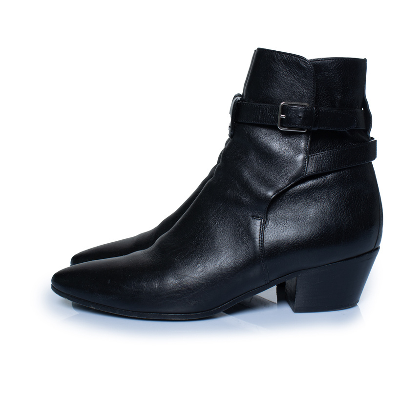 • Saint Laurent, West Jodhpur buckled leather ankle boots in black. A few scuffs on the leather, overall in good condition.