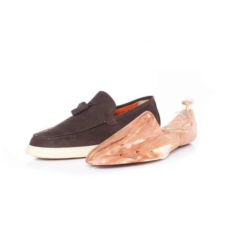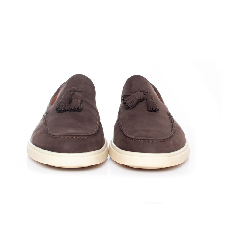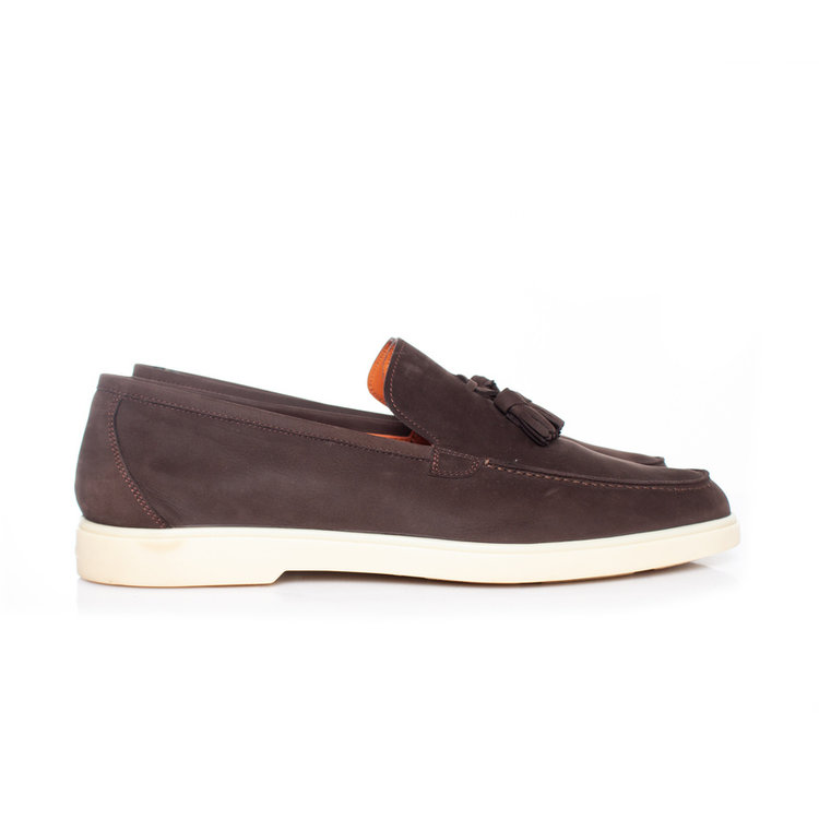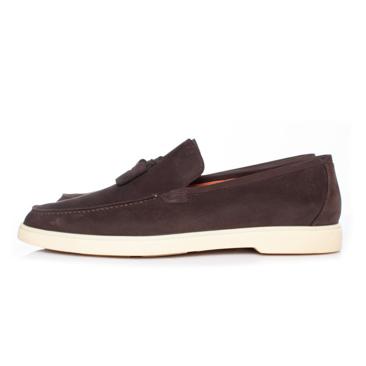 • Santoni, Tassel loafer in brown suede. The item is in very good condition and comes With shapers and box.