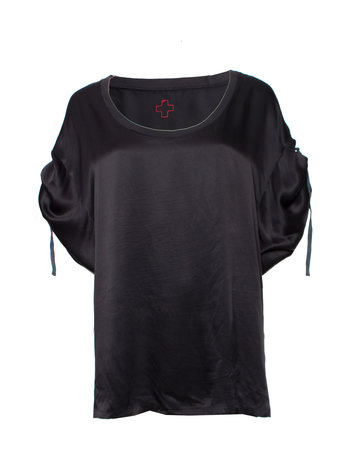 A.f. vandevorst, Black oversized shiny cotton top in size S. This item is in very good condition.