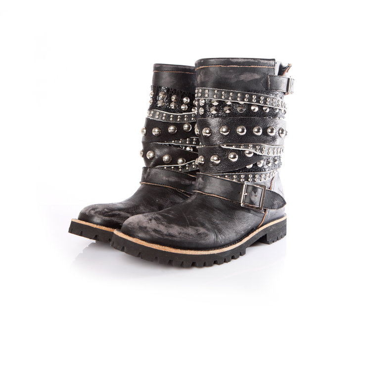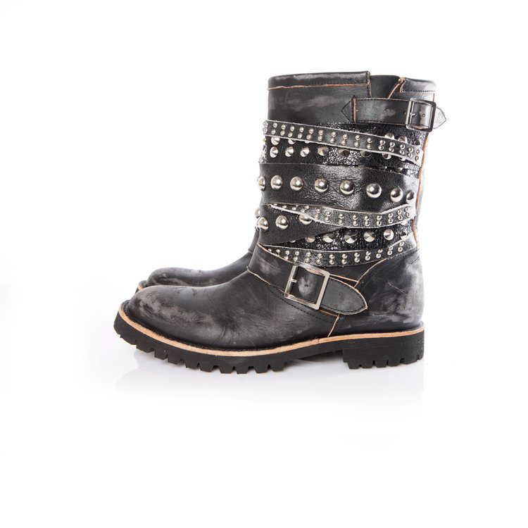 • TAO Comme des Garcons, black studded biker boots. This product has been worn only once and is in excellent condition.