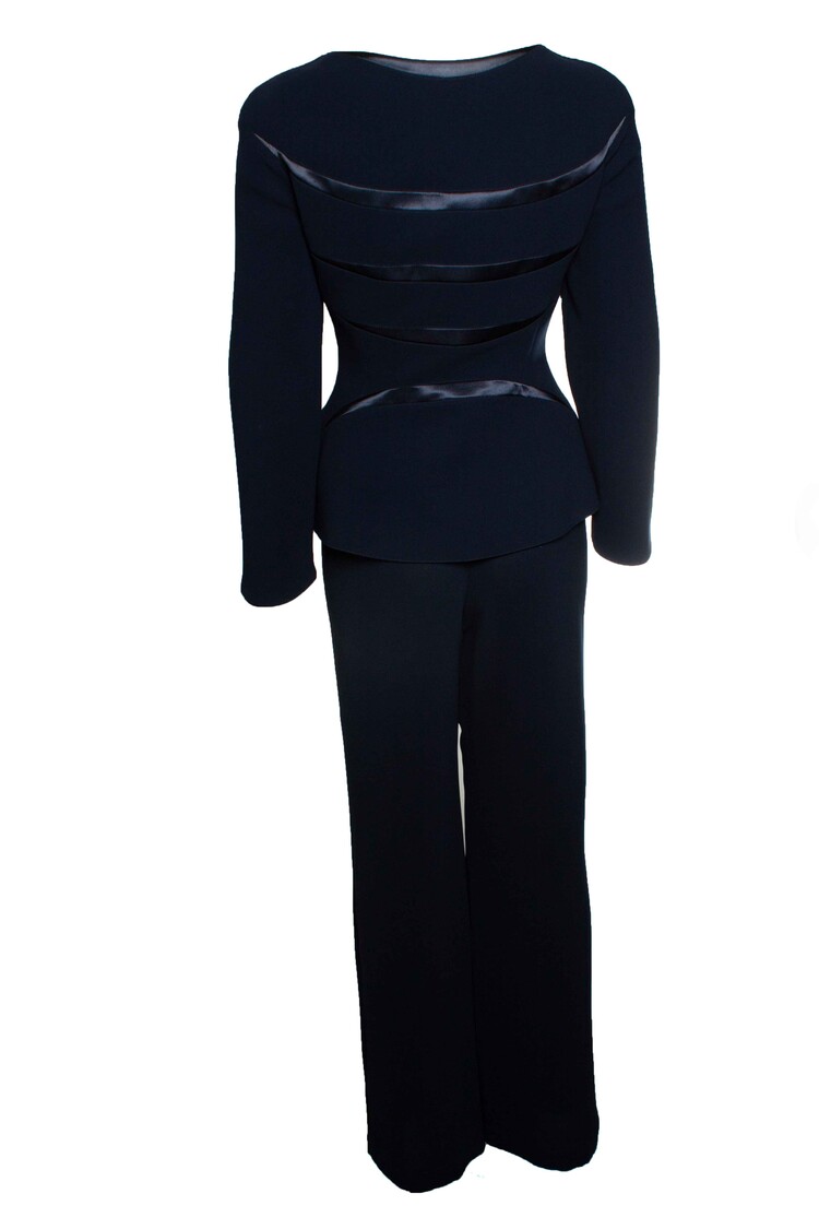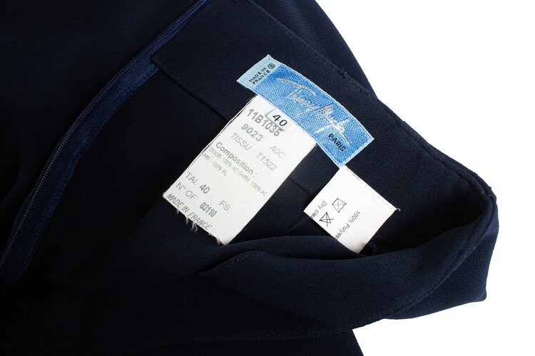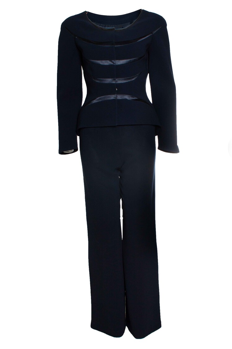• Thierry Mugler, spring 2000 navy blue suit. The item is in very good condition, pantalon has been adjusted in the waist.