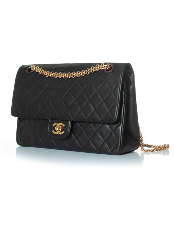Chanel, Timeless quilted leather shoulder bag with 24k gold hardware. Item is in good condition. Small spots on the front flap. Interior in very good condition. Comes with authenticity card, serial sticker and dustbag. Corners have had a spa treatment.