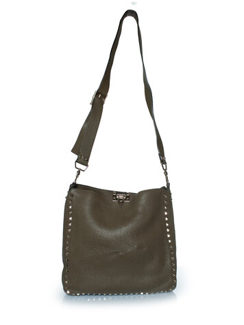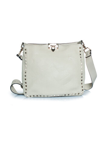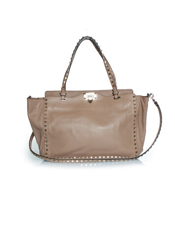 Valentino Garavani, Medium rockstud leather tote in beige. The item is in very good condition with few small dents and scratches on the leather. Item comes with shoulder strap and dustbag. Very small discolouration on one of the sides. Comes with dustbag.
