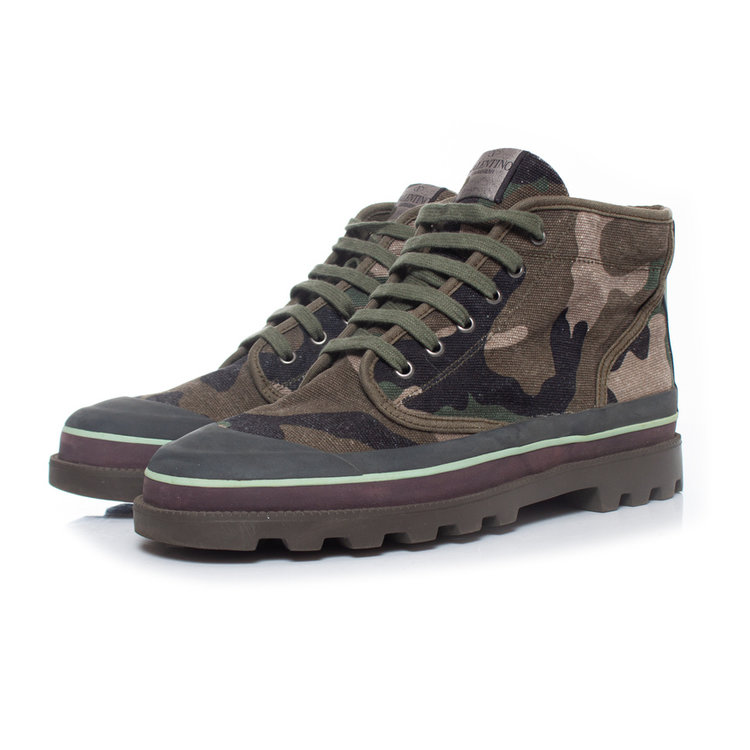 • Valentino Garavani, Fabric lace up ankle boots in camouflage print. The item is in very good condition.