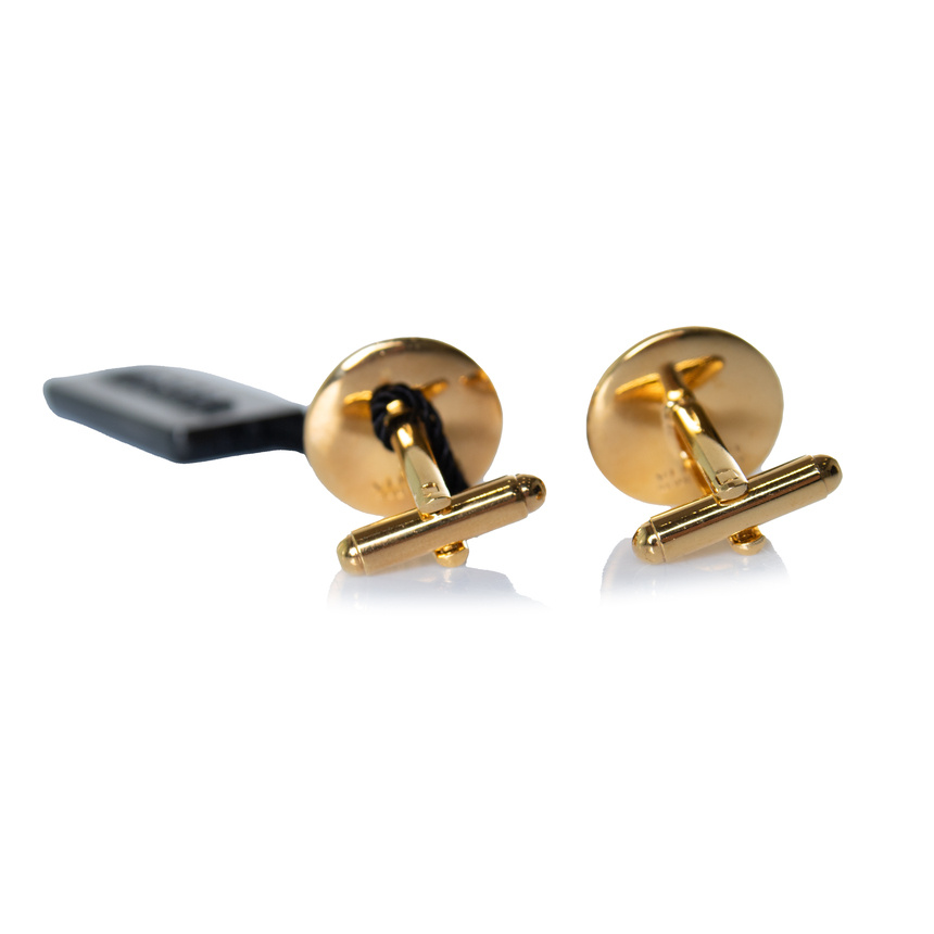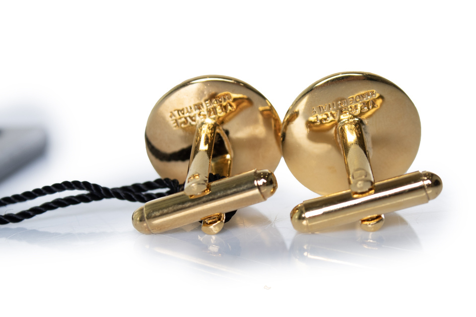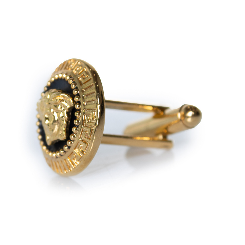 • Versace, Medusa gold tone and enamel cufflinks. The item is new with tag.