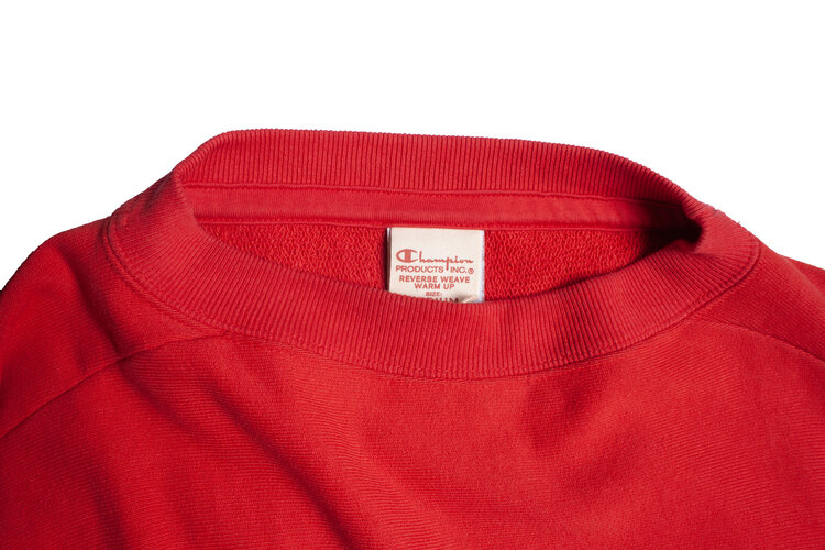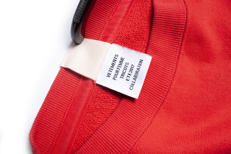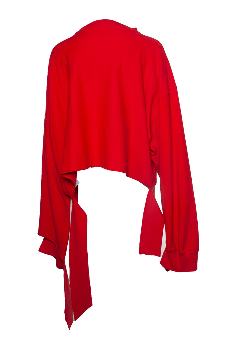 • Vetements X Champion, red sweatshirt with open cuts and very long sleeves. The item is in good condition. (2017)