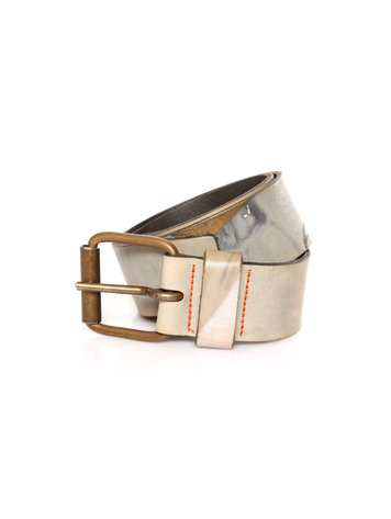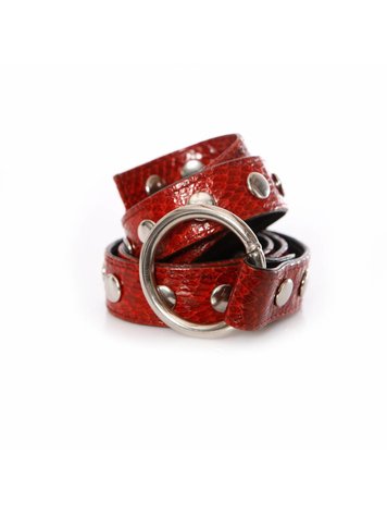 Gaultier Jeans, black high shine leather belt with bordeaux red details in size 70.