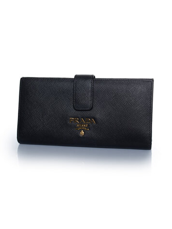 Prada, Black saffiano leather wallet. The item is in very good condition.
