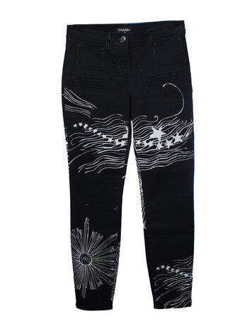 Chanel, 2022 black skinny starburst zodiac jeans. The item is new with tag.
