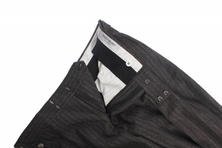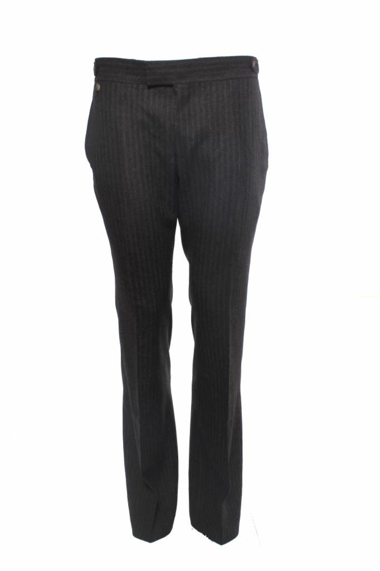 CONDITION: worn only onceSIZE: 50, LMEASUREMENTS: length 105, width upper leg 32 cm, width flair 26 cm, waist 44 cmFABRIC: 100% rayon viscoseCOLOUR: brown/grey pinstripeITEM LOCATION: the netherlandsITEM NUMBER: 0163