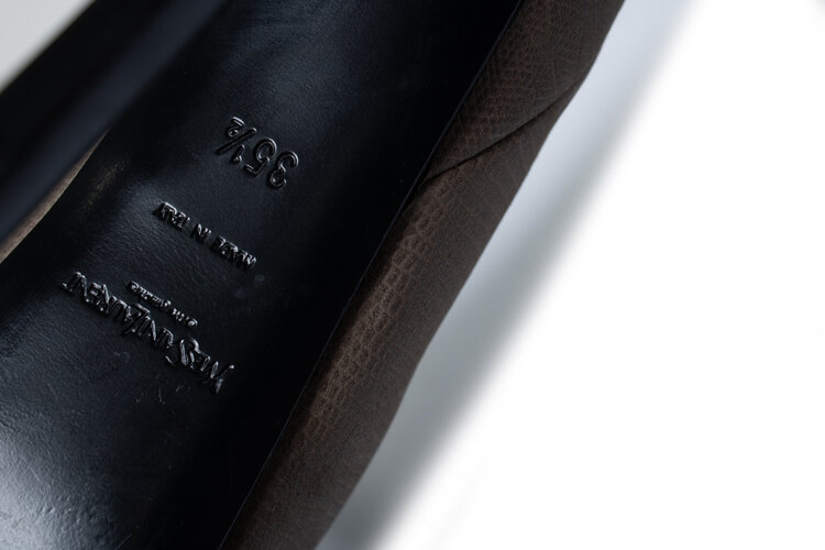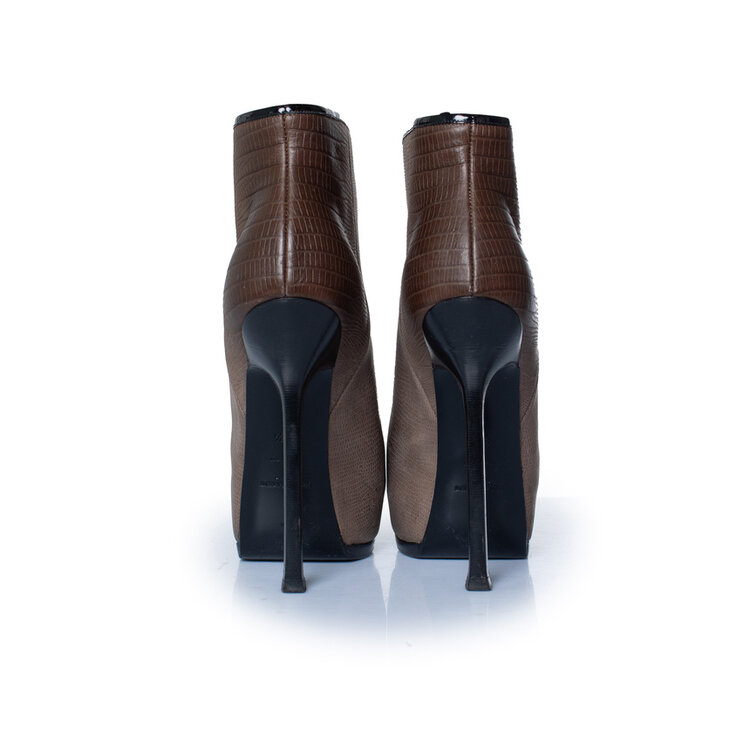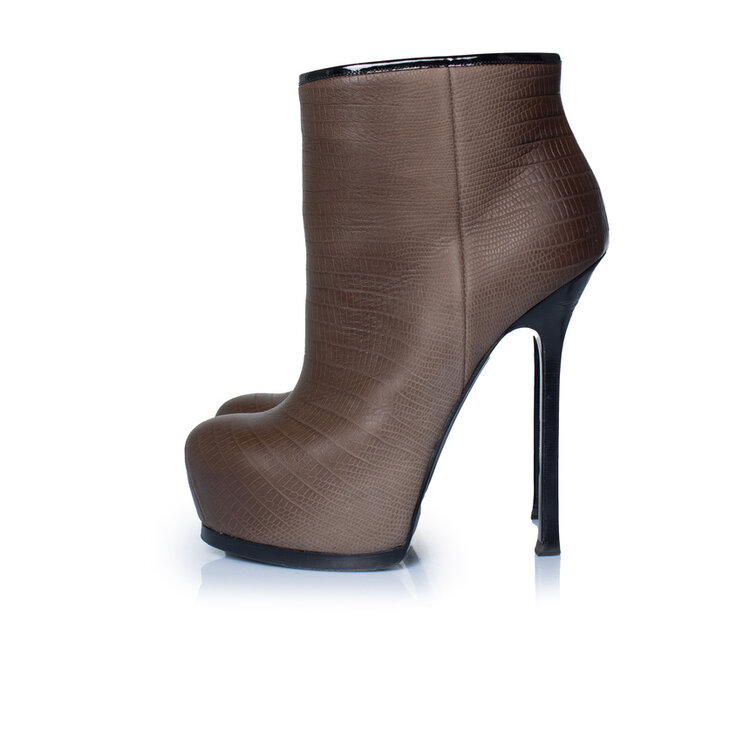 • Yves Saint Laurent, Tribute leather ankle boots in lizard print. The item is in good condition