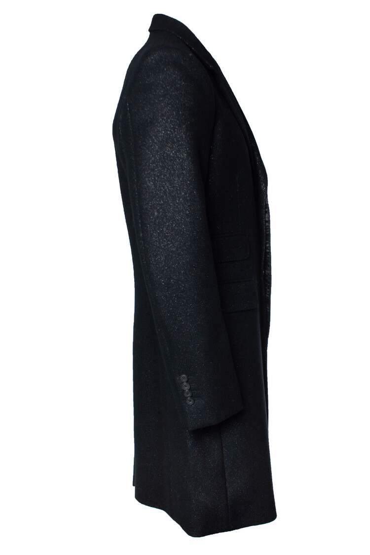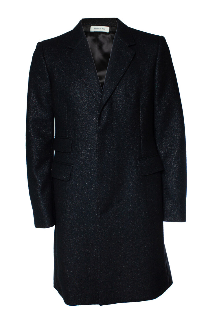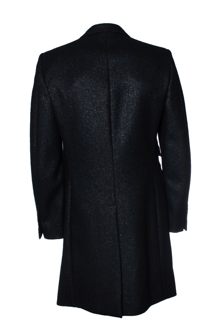 • Alexander McQueen, Glitterwollen jas in zwart. Het artikel verkeert in zeer goede staat.