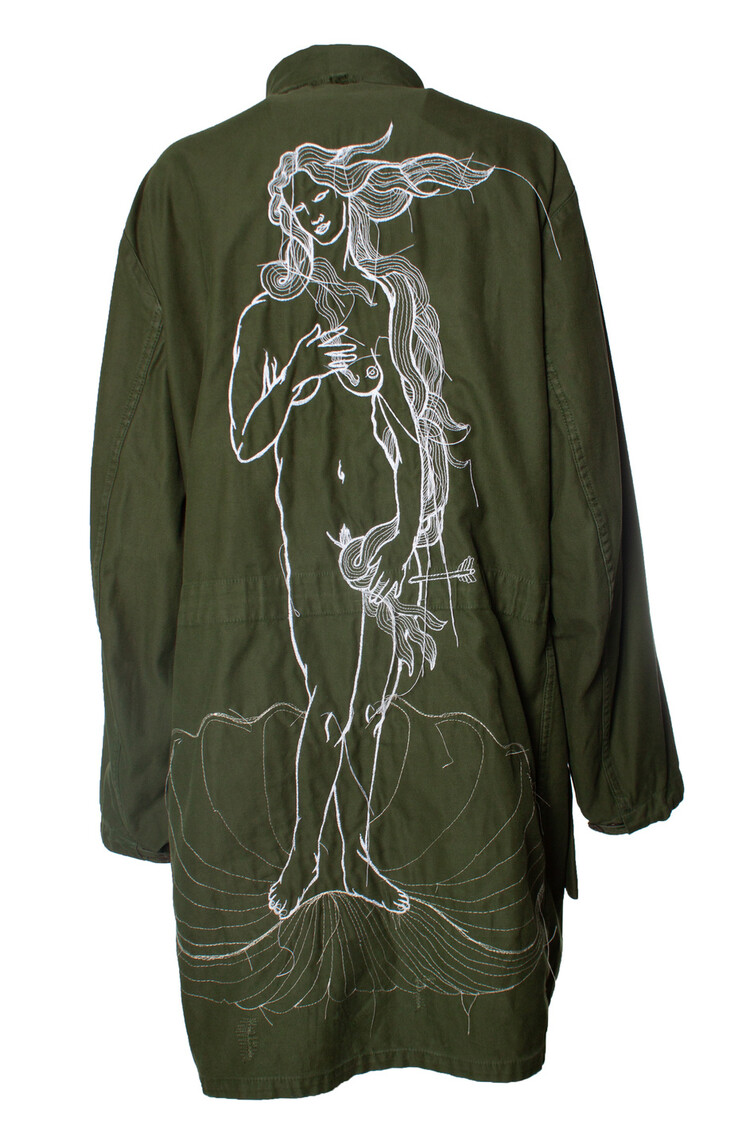 AFMETINGEN: lengte 97 cm, breedte 61 cm, taille 64 cm, schouderbreedte 50 cm, mouwlengte 64 cm