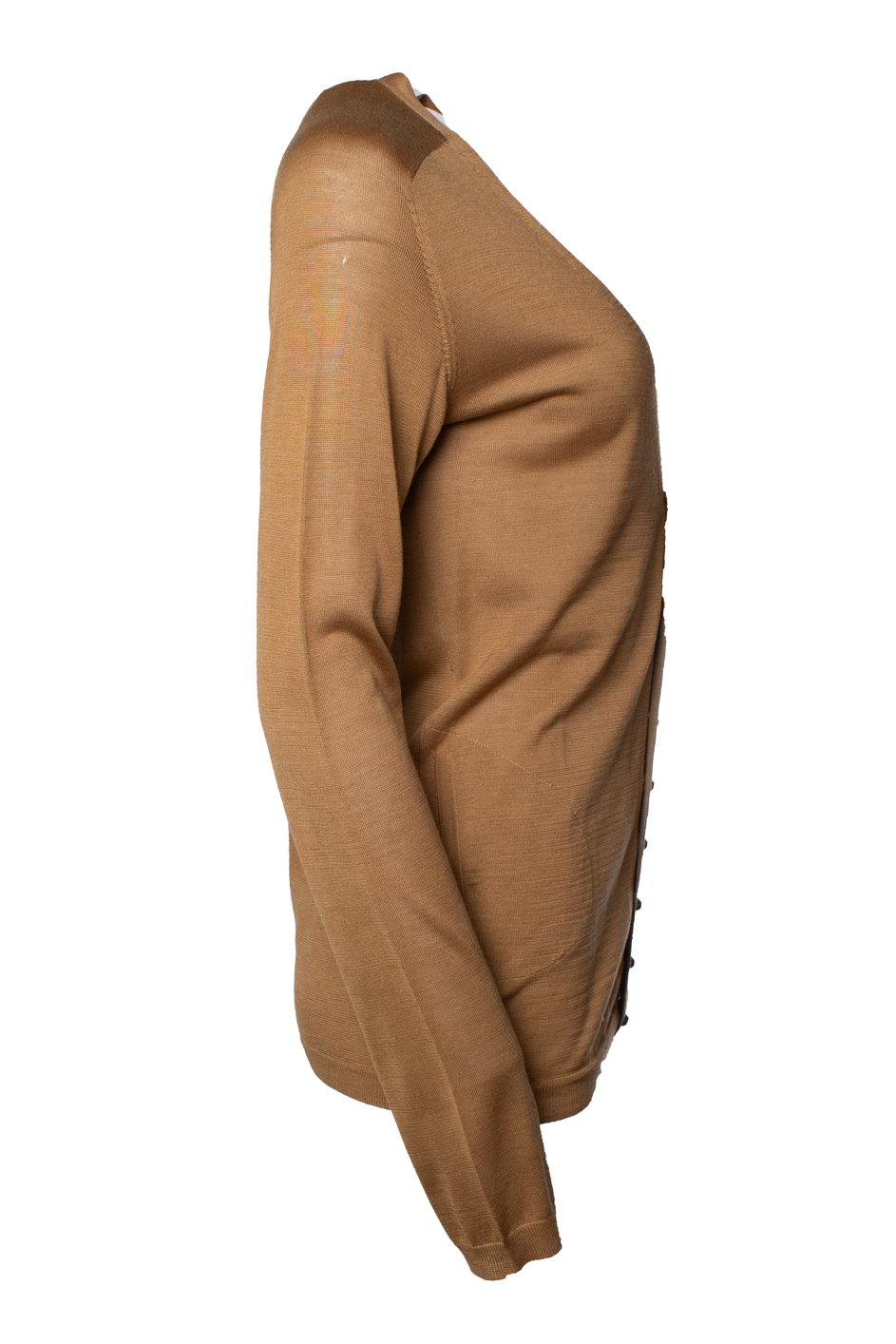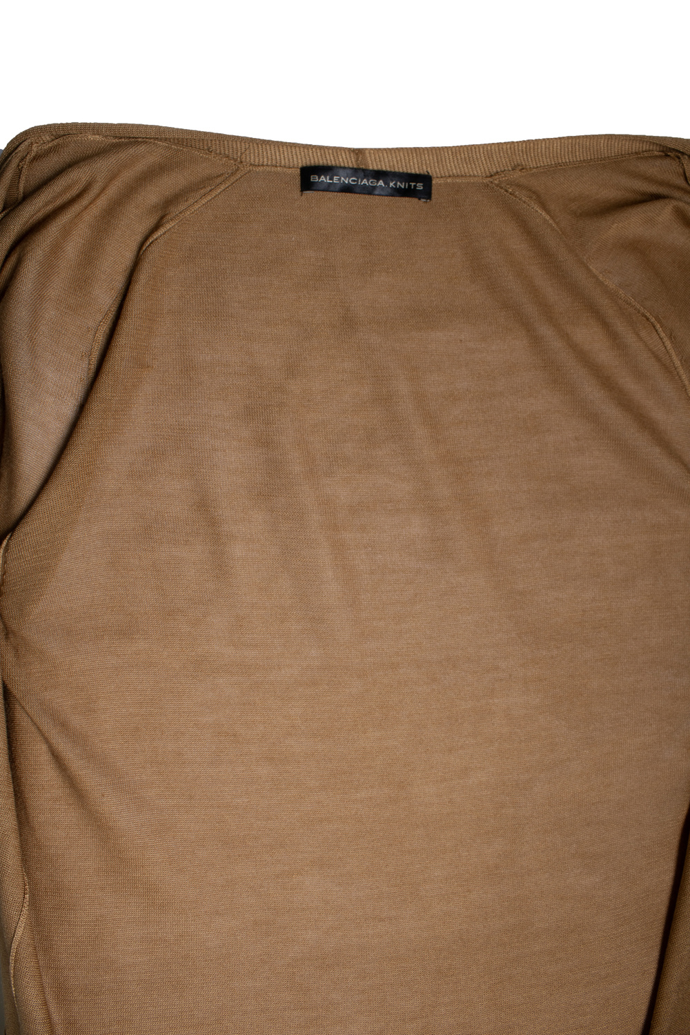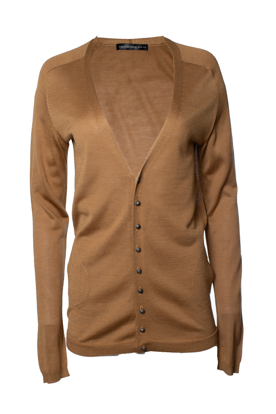 • Balenciaga gebreide bruine cardigan. Het artikel verkeert in zeer goede staat. Enkele kleine plooitjes in de stof.