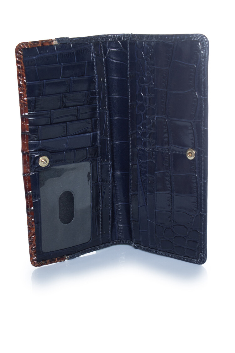 • Brahmin, portemonnee van bruin en blauw leer met krokodillenprint. Het item is in uitstekende staat.