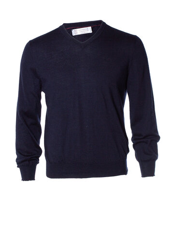 Brunello Cuccinelli, blauwe kasjmier trui. Het artikel verkeert in goede staat. Klein haaltje aan de linkermouw
