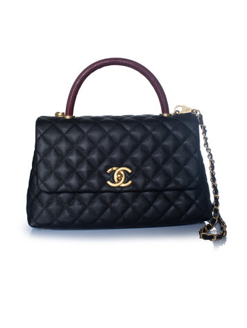 Chanel, tas met handvat van zwart kaviaarleer en hagedissenhengsel in bordeauxrood. Het artikel verkeert in zeer goede staat en wordt geleverd met doos, stofzak, kaartje en serienummersticker. De pootjes en hoeken vertonen zeer lichte gebruikssporen.