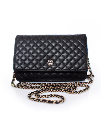 Chanel, Zwart doorgestikte woc met gouden metaalwerk. Het item heeft gebruikkerssporen aan de randen en binnenkant van de tas en het metaalwerk is verkleurd. Het item is in acceptabele conditie.