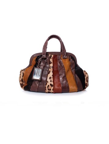 Dolce & Gabbana, gestreepte veelkleurige handtas van leer en ponyhuid. Dit item is een of twee keer gedragen en is in uitstekende staat. Zeer kleine kale plek op de herfstkleurige streep. Volledig gevoerd met luipaardprint.
