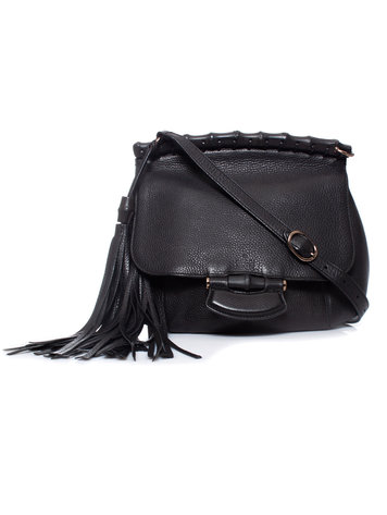 Gucci, zwart leren Nouveau franje bamboe tas. Dit item heeft één beschadigde franje verder is het item in uitstekende staat zowel aan de buitenkant als aan de binnenkant. Wordt geleverd met stofzak.