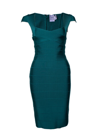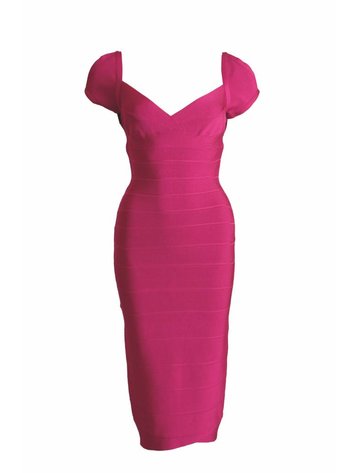 Herve Leger, koraalroze Oria bodycon stretchjurk. Dit artikel is in zeer goede staat. Heel klein vlekje op de achterkant. Derde streep van rechts onder.