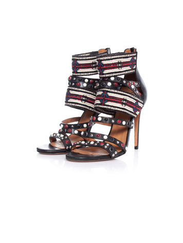 IRO, multikleurig gewoven boucle jasje met Aztec print en leren witte bies in maat 0/XS. Het product is in goede conditie en is maar een aantal keer gedragen.