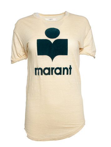 Isabel Marant Etoile, T-shirt met logoprint in geel. Het artikel is in zeer goede staat.