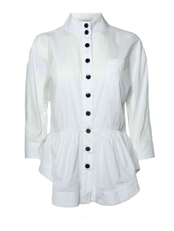 J.W. Anderson, Wit poplin overhemd met zwarte glanzende drukknopen. Het artikel verkeert in zeer goede staat.