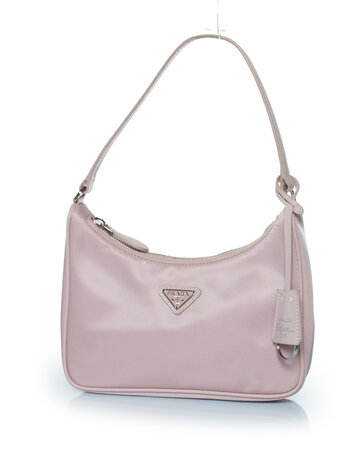 Prada, Re-edition 2005 mini tas van re-nylon en saffianoleer in roze. Het artikel is in goede staat, met een paar vlekjes op de achterkant. De binnenkant is schoon. Wordt geleverd met stofzak.