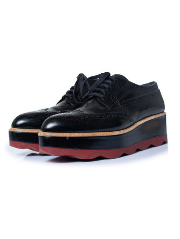 Prada, glanzende leren broque veterschoenen met plateauzool. Het artikel heeft een paar zeer kleine gebruikssporen, maar verkeert over het algemeen in goede staat.