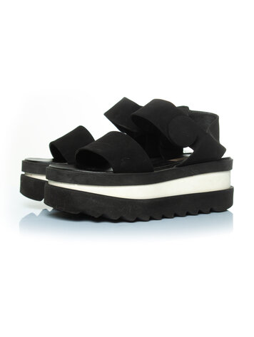Stella McCartney, drievoudige platformsandaal in zwart en wit. Het item is in goede staat, wordt geleverd met stofzak en doos.