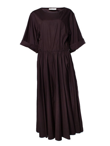 The Row, Maxi-jurk in bruin met trekkoord in de taille. Het artikel verkeert in goede staat.