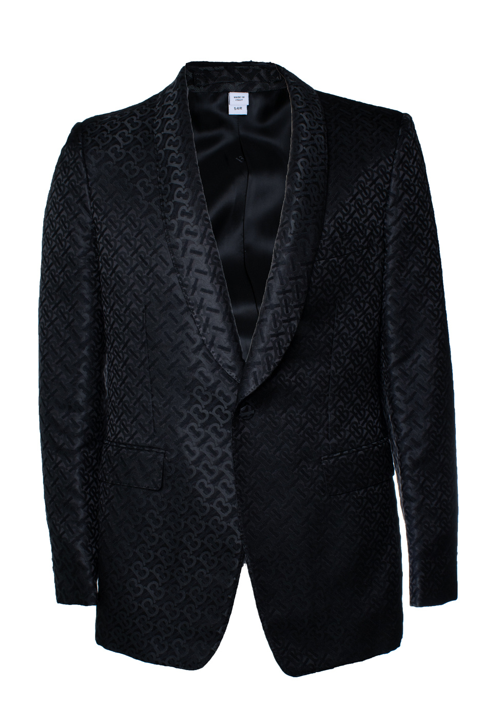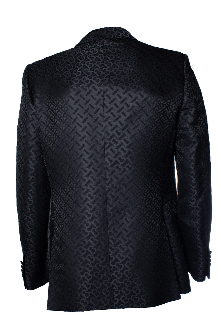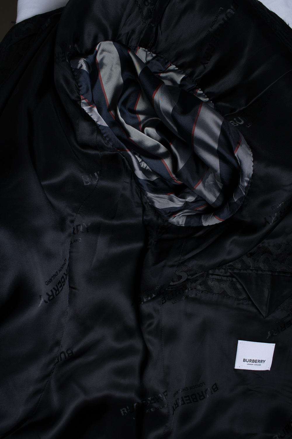 • Burberry, B-jasje met print in zwart. Het artikel heeft lichte vlekken in de oksel op de voering en verkeert verder in zeer goede staat.