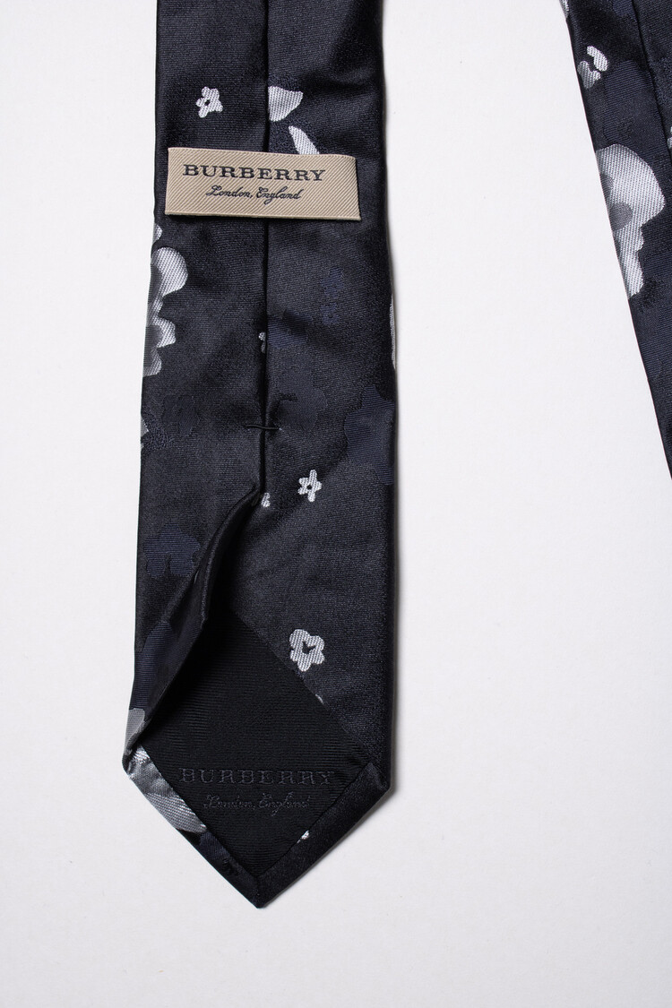 • Burberry, stropdas met bloemenprint in zwart. Het artikel verkeert in zeer goede staat.
