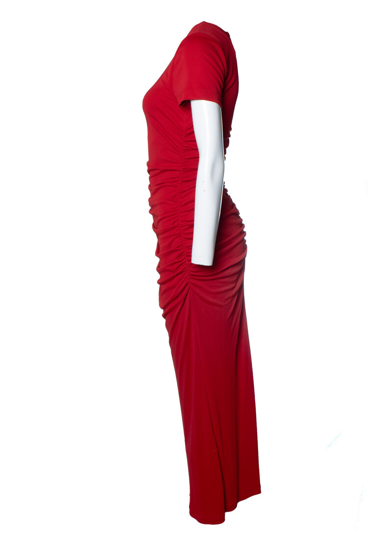 AFMETINGEN: lengte 142 cm, breedte 39 cm, taille 32 cm, schouderbreedte 37 cm, mouwlengte 18 cm