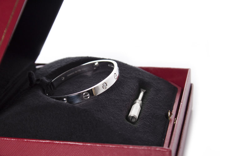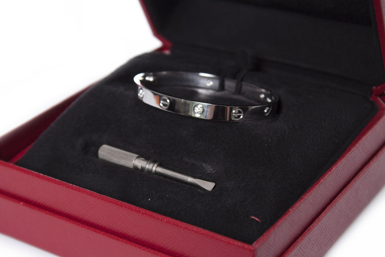 • MATERIAAL: 18k witgoud, 4 ronde briljant geslepen diamanten van in totaal ongeveer 0,42 ct. van VVS Clarity, F Color